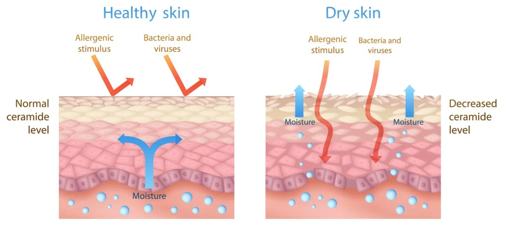 How it works: Ceramides are long-chain lipids that sit within the skin barrier’s “mortar.” The barrier itself is essential in trapping moisture within the skin’s layers and preventing dryness and trans-epidermal water loss (TEWL) — see this highlighted section. By reinforcing that seal, ceramides help your skin hold onto hydration and keep irritants out. Because ceramides are naturally present in our skin, they’re generally well tolerated and play nicely with other actives.